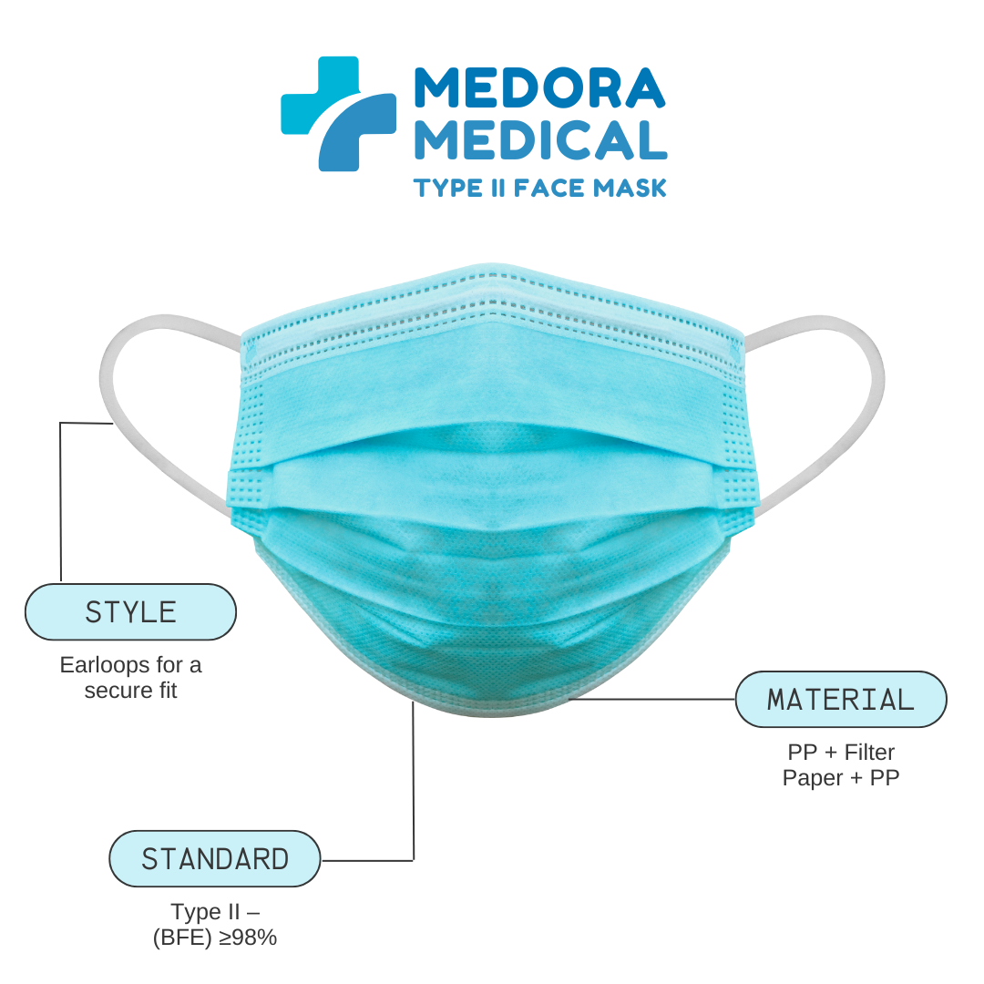 Our Type II face masks offer excellent bacterial filtration, making them ideal for general medical use and environments requiring high hygiene standards. Lightweight and breathable, these masks ensure comfort for extended wear.
